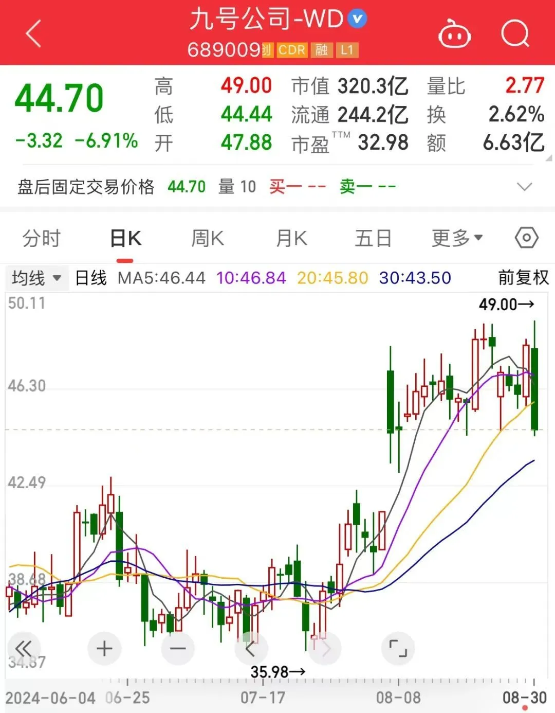 从行情表现来看,惠泰医疗和九号公司年内股价表现均较强势,分别累计上涨51.77%和29.19%,均跑赢大盘。