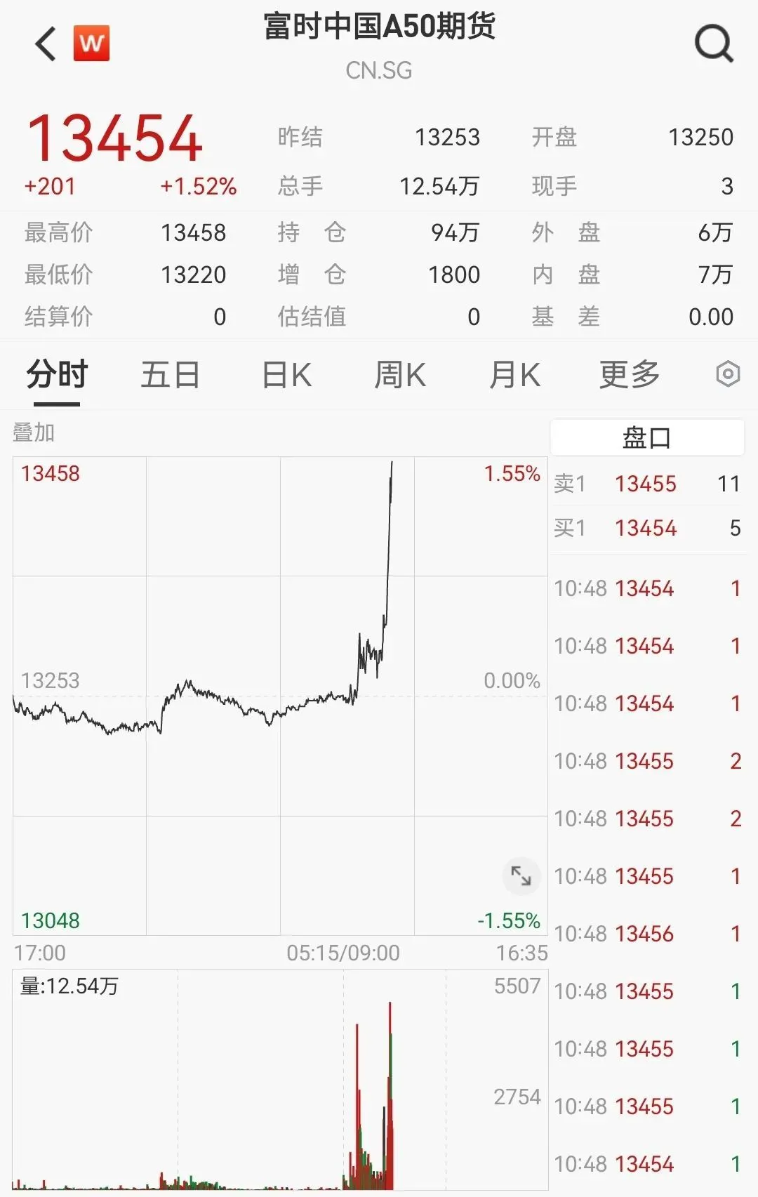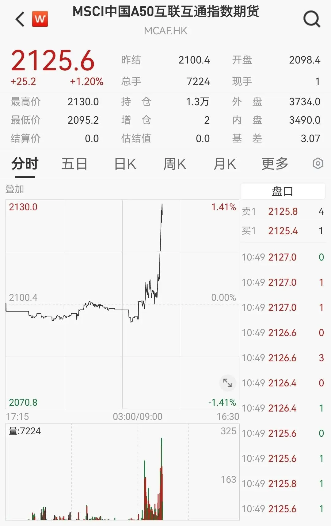 富时中国A50指数期货短线拉升涨超1%,MSCI中国A50互联互通指数期货涨近1%。