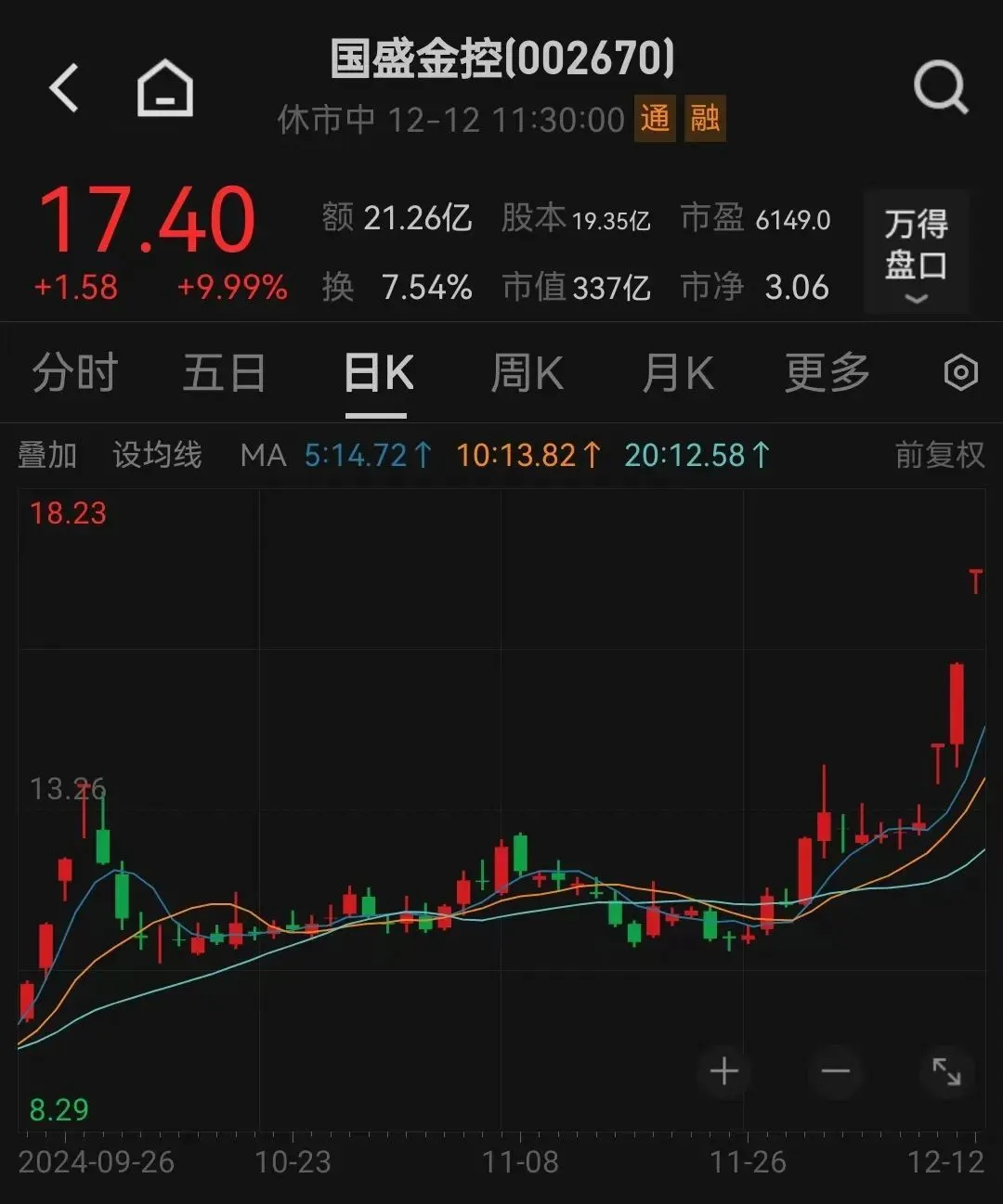 消息面上,国盛金控12月11日晚间公告,公司吸收合并全资子公司国盛证券获证监会受理。