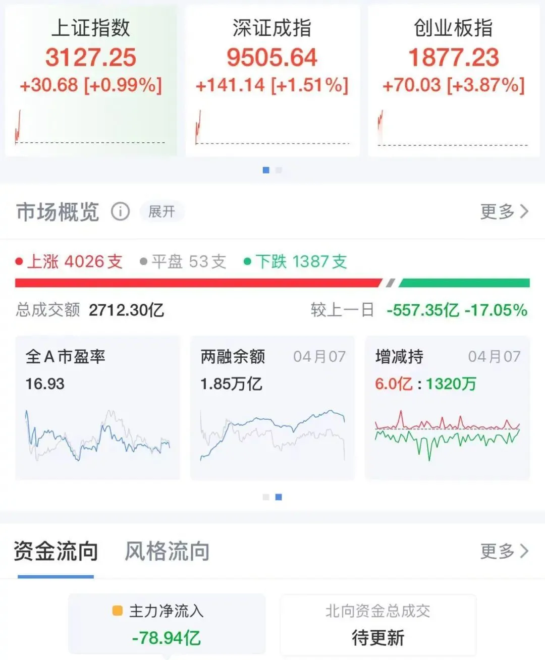 A股开盘后沪指迅速翻红,重回3100点上方,创业板指涨超3%。全市超4000股上涨。