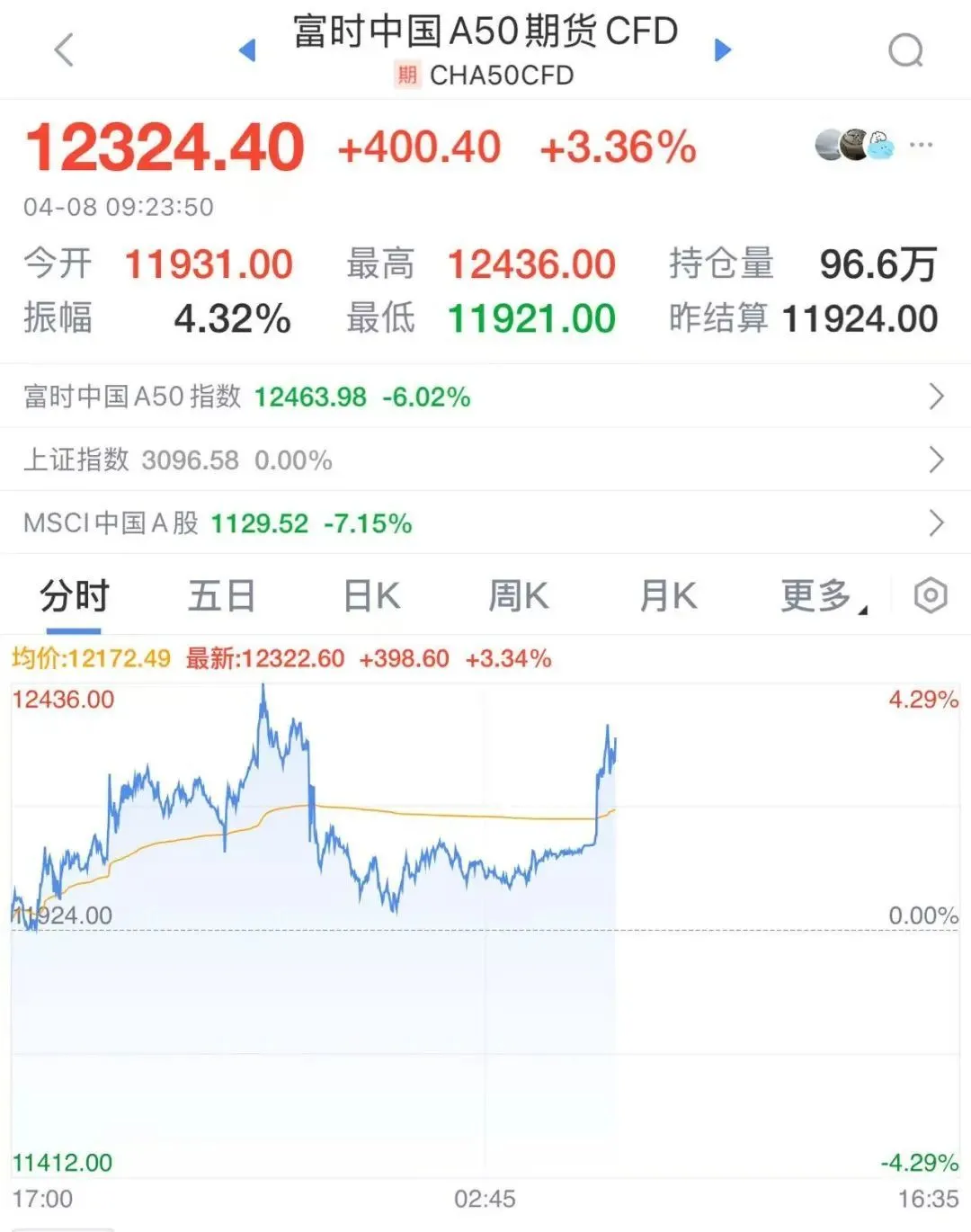 与此同时,富时A50中国指数期货开盘直线拉升,截至发稿涨超3%。