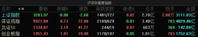 盘面上热点快速轮动,个股涨多跌少,全市场超3800只个股上涨。从板块来看,算力概念股再度走强,常山北明等涨停。机器人概念股反复活跃,精工科技涨停。芯片股震荡反弹,瑞芯微涨停。下跌方面,银行股集体调整,华夏银行跌超8%。