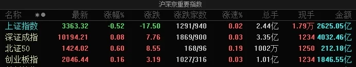 盘面上热点快速轮动,个股涨多跌少,全市场3300只个股上涨。从板块来看,机器人概念股集体大涨,嵘泰股份等多股涨停。可控核聚变概念股再度走强,百利电气涨停。军工股展开反弹,成飞集成8连板。下跌方面,保险、银行等大金融股迎来调整,中国太保等多股跌超2%。