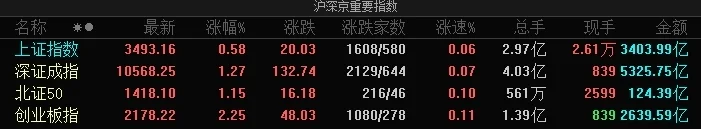 7月8日,市场早盘震荡反弹,创业板指领涨。截至午间收盘,沪指涨0.58%,深成指涨1.27%,创业板指涨2.25%。沪深两市半日成交额8730亿,较上个交易日放量1012亿。
