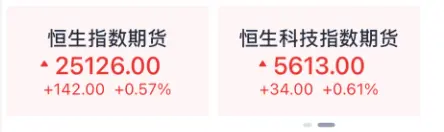 中国资产方面,同样大涨,中概股指数涨约0.6%,港股两大指数夜盘均涨约0.6%。