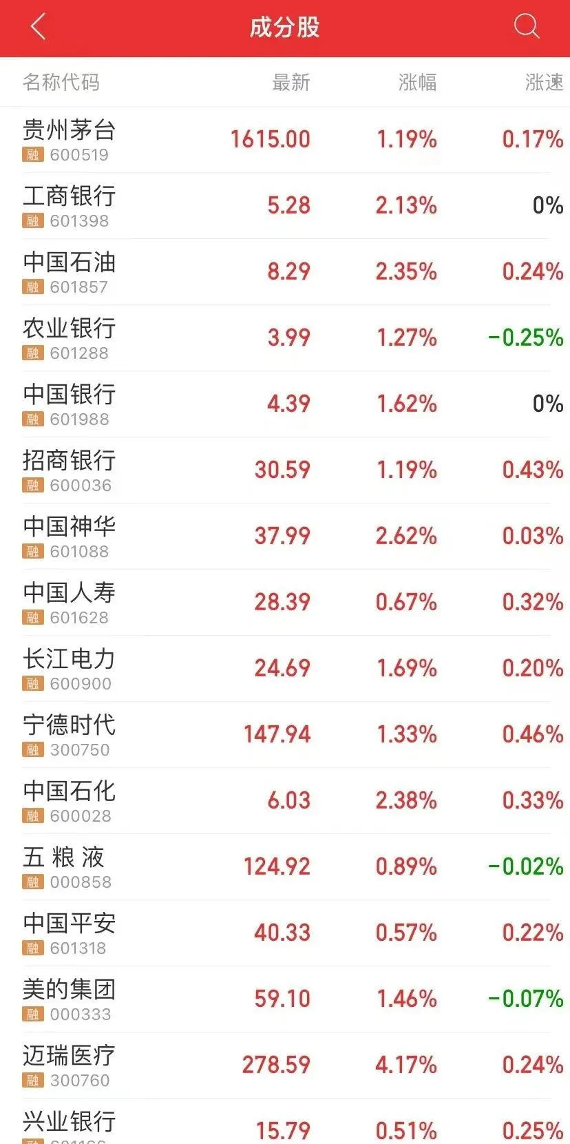 盘面 上,上涨个股中大多数市值排前列,银行等权重板块较为活跃,其中工商银行、中国石油、中国神华、中国石化等涨幅均超2%。