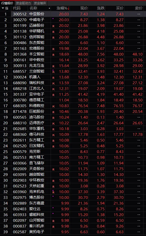 板块方面:通用机械、工业机械、工程机械、工业母机、机器人概念等板块全线走好,板块中个股现涨停潮,运输设备、汽车、家电、家居、环保、航空等板块涨幅居前;