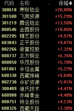 一是以铜为代表的工业金属板块,飞南资源、寒锐钴业等个股大涨。