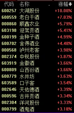 二是以白酒为代表的大消费,大湖股份、老白干酒、顺鑫农业等个股大涨。