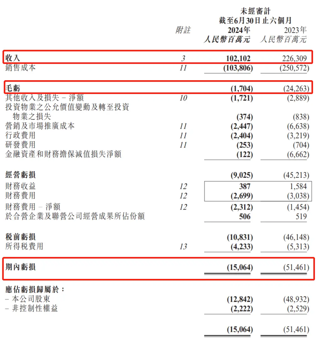 好消息是,因为2023年已经一次性计提了这么多减值损失,所以2024年碧桂园少亏了很多——