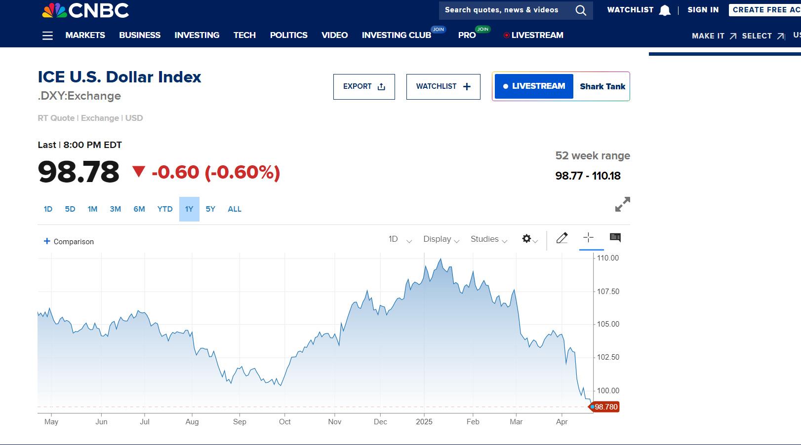 衡量美元对六种主要货币的美元指数近期持续走低。截至北京时间4月21日8时,洲际交易所美元指数报98.78,跌幅0.6%,跌破99关口,为2022年4月以来首次。 转载请注明出处华人站华人新闻,华人中文网 » 美元指数近期持续走低,已跌破99关口