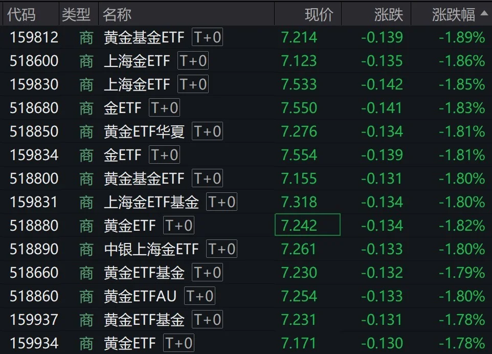 转载请注明出处华人站华人新闻,华人中文网 » 避险资产黄金走弱,黄金相关ETF早盘跌近2%