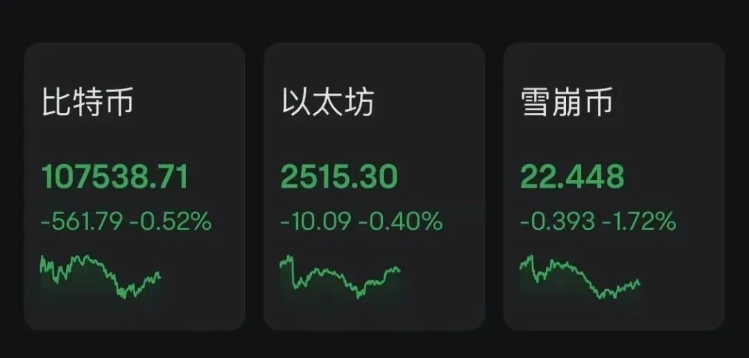 之前,一度冲上110000美元的比特币在周末震荡走低,截至发稿有所回升,至107500美元附近,此前,比特币一度跌至106600美元附近。