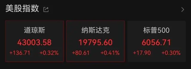 当地时间6月11日,美股三大股指盘初集体上涨。Wind数据显示,截至北京时间6月11日22:54,道指涨0.32%、纳指涨0.41%、标普500指数涨0.3%。