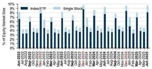 花旗则估计,周五将有名义价值达5.8万亿美元的未平仓头寸到期,其中包括4.2万亿美元的指数期权、7080亿美元的ETF期权以及8190亿美元的个股期权。