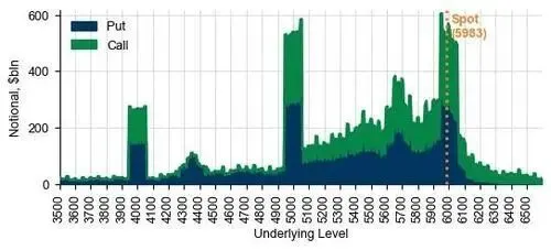 Fishman表示,“在过去几个月我们应对大量关税问题时,人们可能觉得6000点真的是一个非常难以达到的水平,因此会选择卖出6000点附近的看涨期权,以此作为在不同点位获取对冲资金的一种方式。”