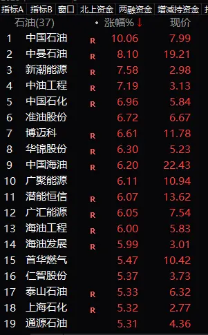 截至发稿,中国石油股份(00857.HK)涨超7%,中国石油化工股份(00386.HK)涨超5%,中国海洋石油(00883.HK)涨超3%。