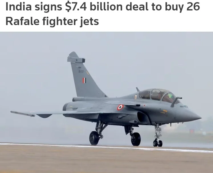 据报道,印度政府4月上旬批准增购26架法国“阵风”战斗机,其中22架为舰载机型,将部署于印度国产航母“维克兰特”号;4架为双座型,用于训练。
