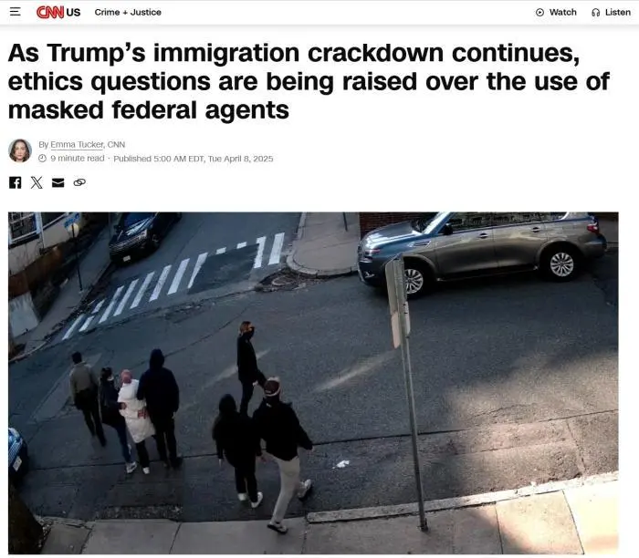 此前,据美国有线电视新闻网(CNN)报道,还发生过ICE的蒙面特工在未出示身份证明的情况下,强行逮捕外国留学生的事件。