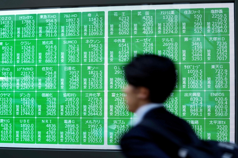 4月7日,行人经过日本东京的一处电子股指显示屏。