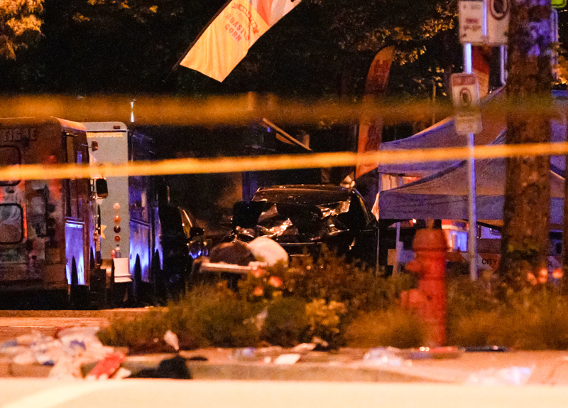 图说:4月27日在加拿大温哥华拍摄的涉嫌冲撞人群的车辆。 来源:新华社