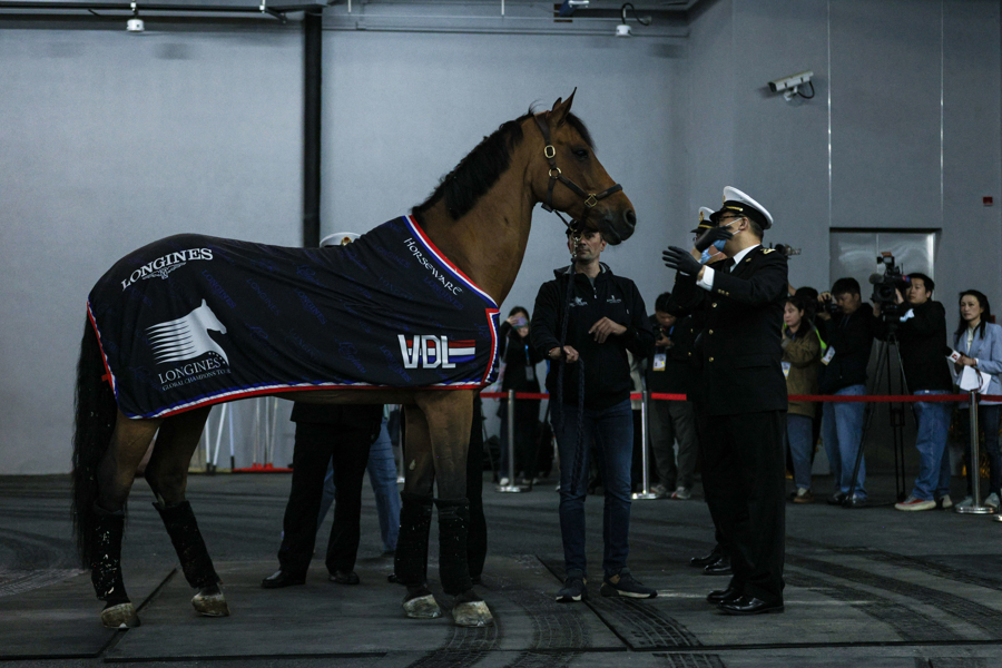 在马匹运输专家吴勳庭看来:“上海久事国际马术中心是大陆地区首座满足国际马术运动五星级赛事标准的永久性场馆,给赛马提供的也是五星级的‘宾馆’服务。”吴勳庭指出,由于长途飞行,赛马可能会出现一些生理反应,比如在飞机上不喝水、不排尿,下了马车后才会进行排泄。因此,兽医会在赛马进入马房的第一时间为它们进行全面体检,防止脱水等情况的发生。