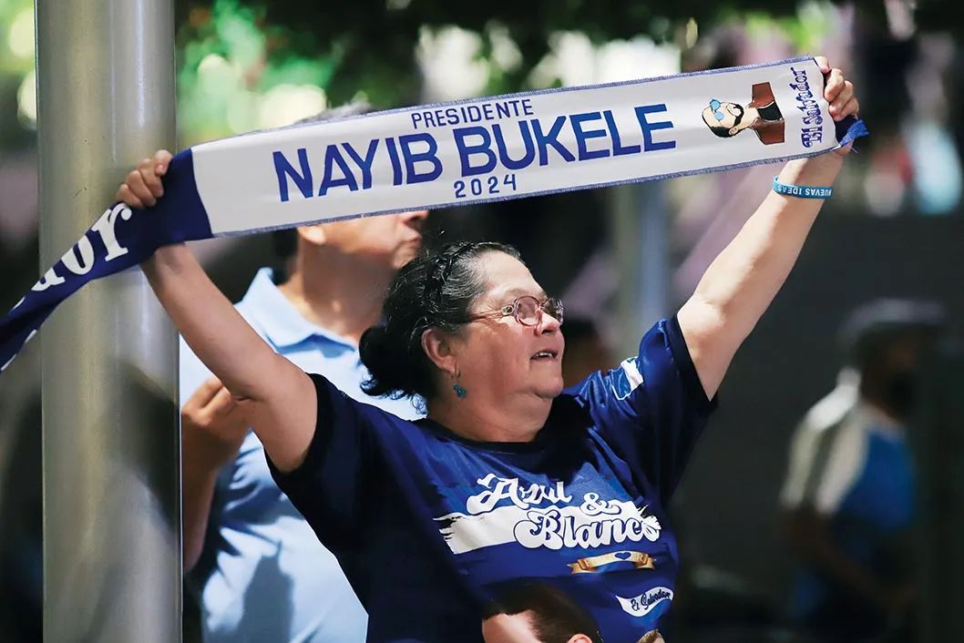 2 月 4 日,布克尔的支持者在萨尔瓦多首都圣萨尔瓦多庆祝 新华社/美联