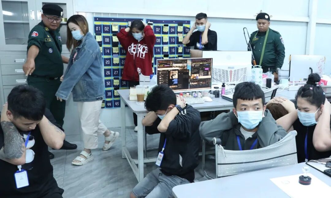 柬埔寨警方突袭电诈窝点,多名涉案人员被当场控制。