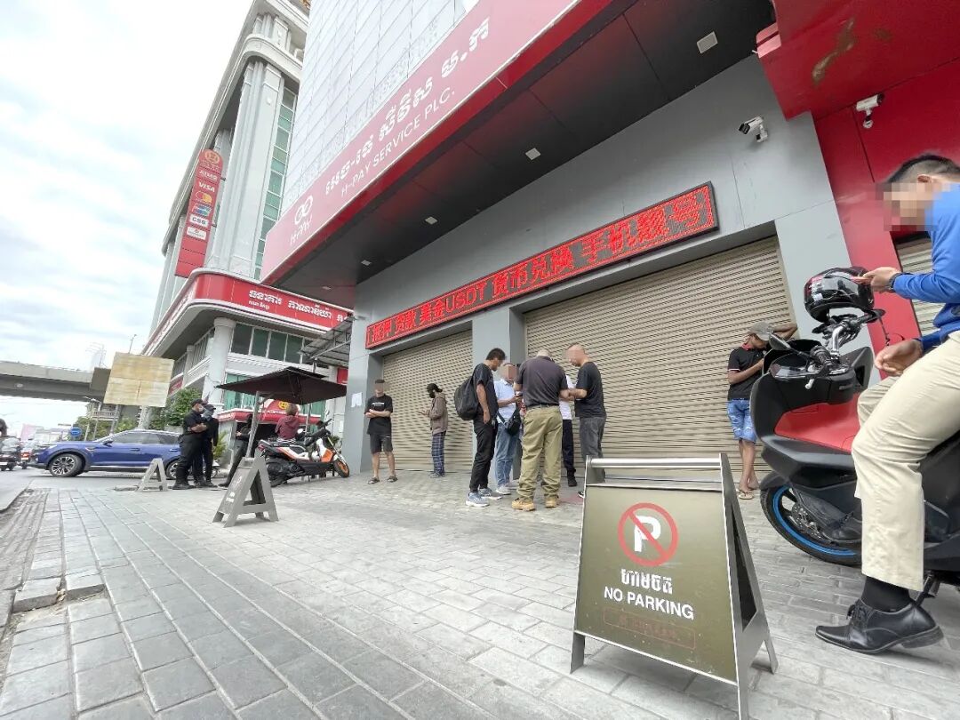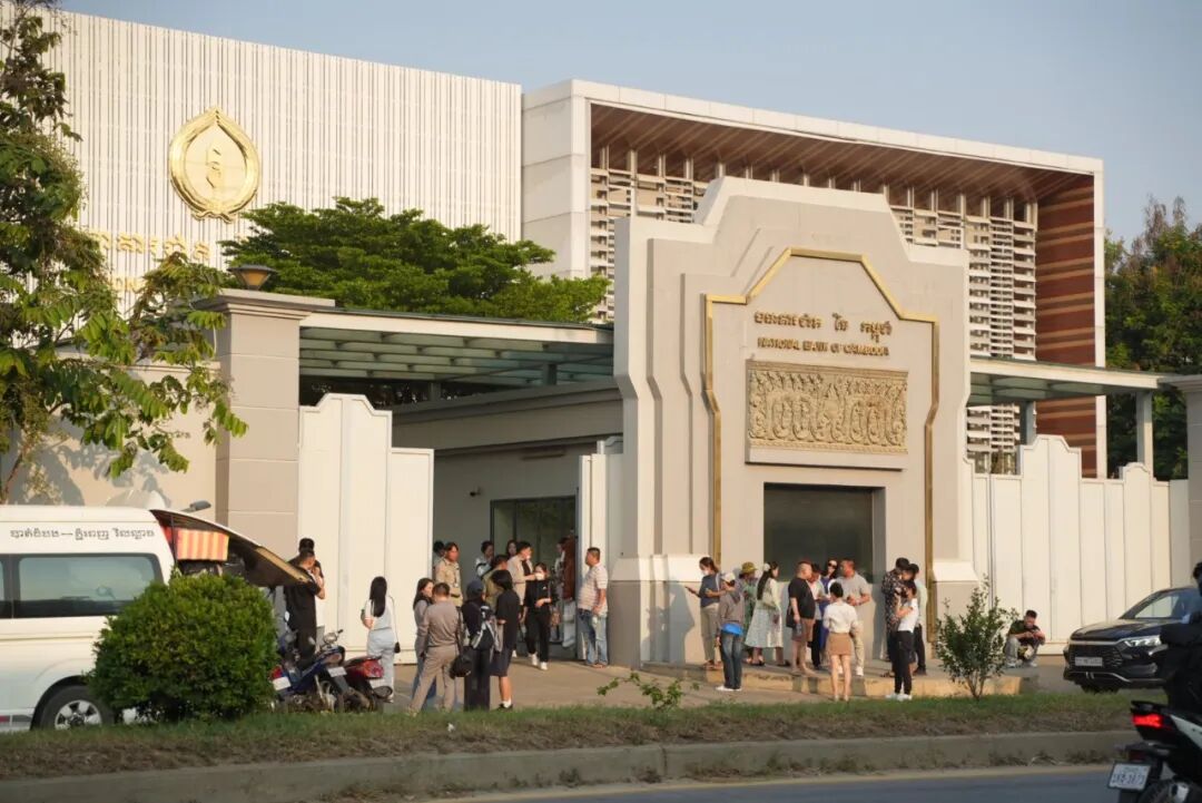 大批中国用户在柬埔寨国家银行门前