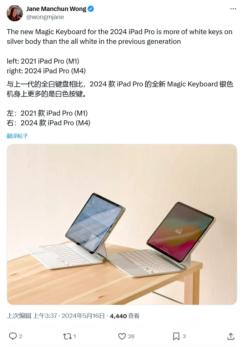 Wong 还表示新版妙控键盘也可以兼容旧款 iPad Pro,苹果官方并未通过软件的方式禁用这种配对行为。