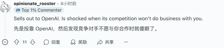 从这个角度看,限制Windsurf的访问权限可谓一举两得:既能防止潜在竞争对手(OpenAI)通过Windsurf获取Claude模型的使用数据和用户反馈,又能为自家的Claude Code腾出更多资源和市场空间。正如一位Reddit网友所说:“AWS托管Netflix,Google Cloud托管竞争对手的网站,这都很正常。但Windsurf被收购后的真正价值不在于模型访问,而在于那些流经平台的元数据——用户如何使用AI编程、遇到什么问题、有哪些需求,这些信息才是真金白银。”