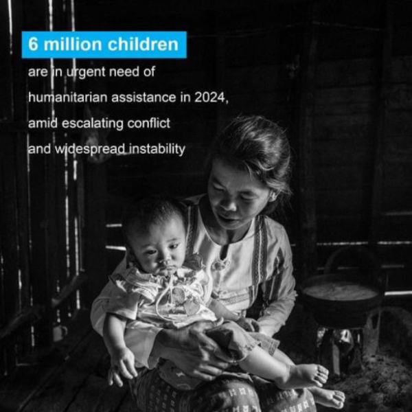缅甸联合国儿童基金会表示,由于缅甸的武装冲突造成地区不稳定,导致超过600万儿童需要救助。