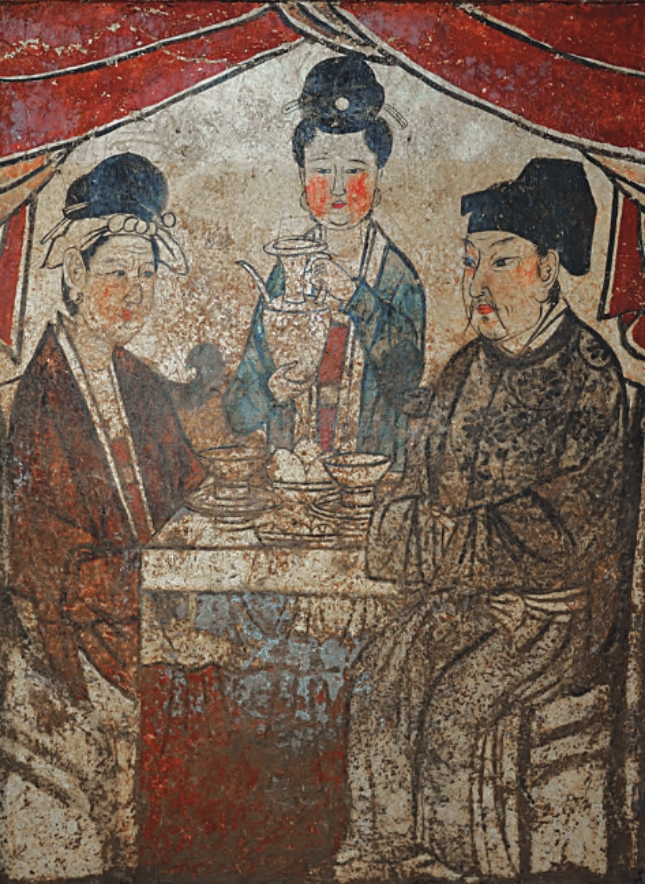 河南登封唐庄宋墓的北宋晚期壁画,展现了当时的人们坐姿饮食的生活方式