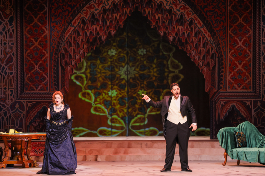 指挥芬兰萨翁林纳歌剧节艺术总监维勒·马特维耶夫对音乐的弹性要求极高。上海音乐学院交响乐团不仅从序曲开始就能在指挥棒下准确交代威尔第暗藏在乐队中的各个主题动机,更能配合演员的自由节奏处理,在恰当的时间节点提供精准支撑。