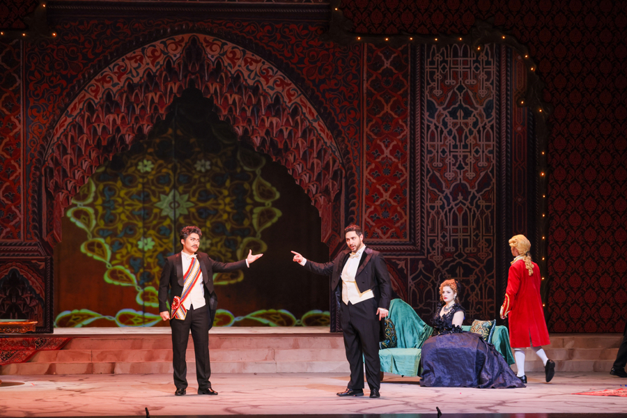 导演马埃斯特里尼在尊重原著的基础上,对表演细节提出了更高要求,为表现戏剧张力,设计了不少需要趴着或躺着唱的动作,这对歌唱者是挑战。在《饮酒歌》中导演设计了碰杯的动作。酒杯碰撞在一起发出“叮叮”声,与观众席不时掉落手机发出的“咚咚”声,似乎为乐队额外增加了一组打击乐。制作依旧保持了先前的“复古”风格,服装道具相较之前有明显提升,这种“观众友好型”制作也确实获得了现场观众的好评。
