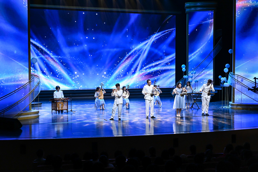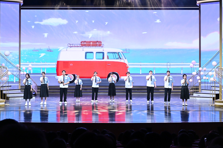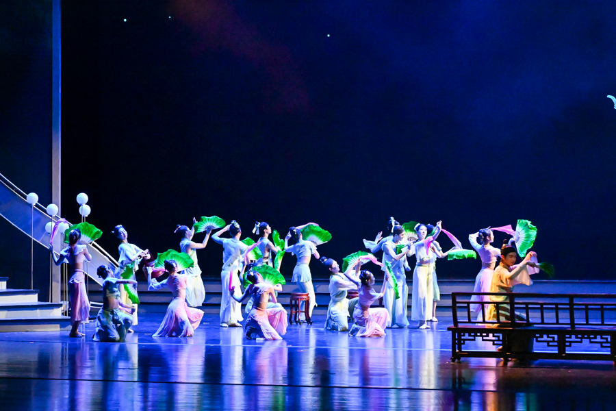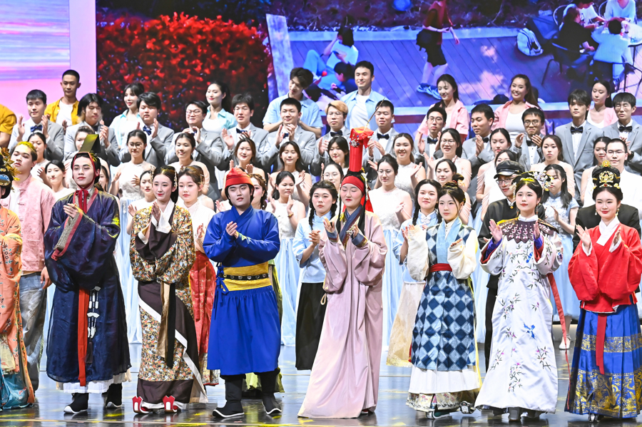 演出现场,充满“科技感”的高校团体,与上海文广演艺集团及旗下上海话剧艺术中心、上海轻音乐团等合作,呈现青春气息十足的节目。上海戏剧学院民族民间舞《江南》,曾斩获第十四届中国舞蹈荷花奖。展演舞台上,学生们再次以水墨画卷般的肢体语言引领观众步入诗意江南。华东师范大学VIVA合唱团携67名成员登台献艺。这支屡次荣膺全国大学生艺术展演一等奖的团队,以全新编排的混声合唱展现声乐艺术魅力。上海电机学院阿卡贝拉版《七里香》通过纯人声演绎传递青春一代对美好生活的向往。在上海交通大学校史剧《霞光颂》基础上创作的短剧《见字如面》,通过徐光宪院士与妻子高小霞院士的科研报国故事,诠释“科学无国界,科学家有祖国”。上海闵行职业技术学院服装秀《穿越时空的盛世华服》彰显传统服饰美学精髓,而新型面料与设计创新暗藏当代服饰材料的迭代演进。艺术季展演现场还揭晓“光影艺术奖”和“风采演绎奖”。观众们感慨,“艺术滋养下,传统文化正以全新的面貌在这些年轻人身上呈现。”