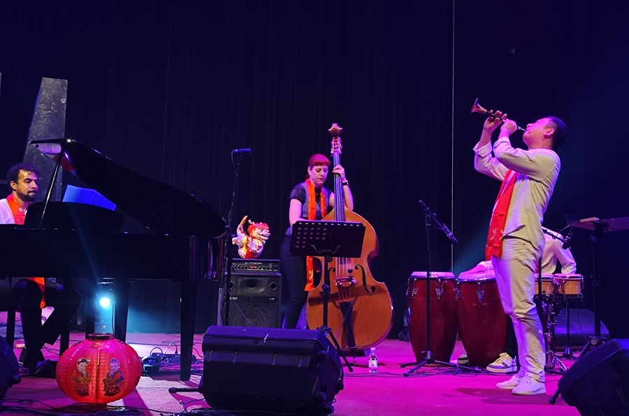 演出由中国经典唢呐乐曲《百鸟朝凤》和古巴名曲《曼波回旋舞》共同拉开序幕。胡晨韵与古巴著名钢琴艺术家埃内斯托·奥利瓦、贝斯演奏家奥利维亚·罗德里格斯、鼓手赫苏斯·艾斯德拉达联袂登台,将中国旋律和古巴节奏交融,展现出一幅生机盎然的音乐画卷。
