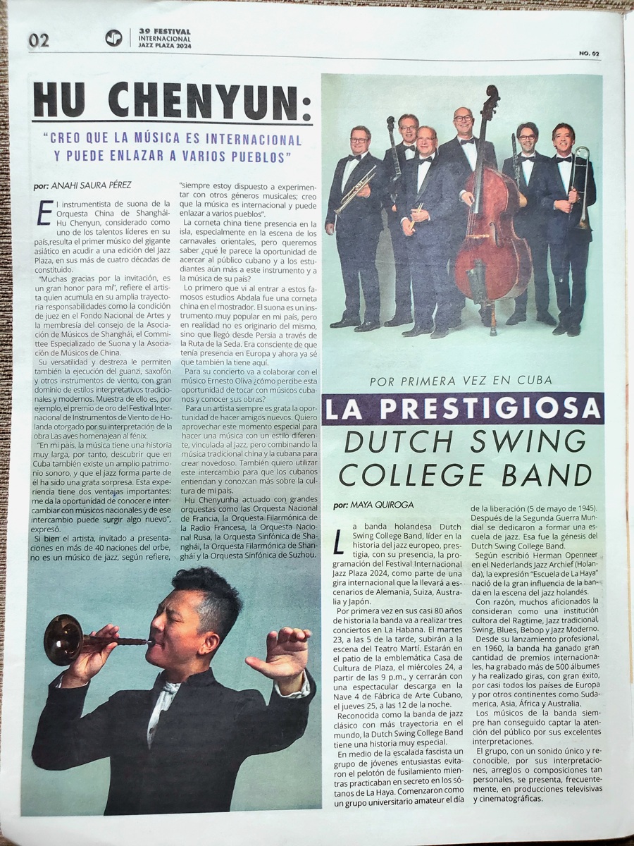 “从上海出发抵达哈瓦那需要五十多个小时,第一次与当地音乐家开始排练时,旅途的辛苦一扫而光。”胡晨韵说。为了此次古巴之行,他准备了《一枝花》《天山》《大鱼》等独具特色的中国曲目。“你永远可以相信手里的这件中国民族乐器,用具有悠久历史的优秀中国传统音乐与同样历史悠久的古巴爵士乐乃至拉丁美洲音乐对话,非常具有挑战性,更能激发出两国艺术家的创作热情。”