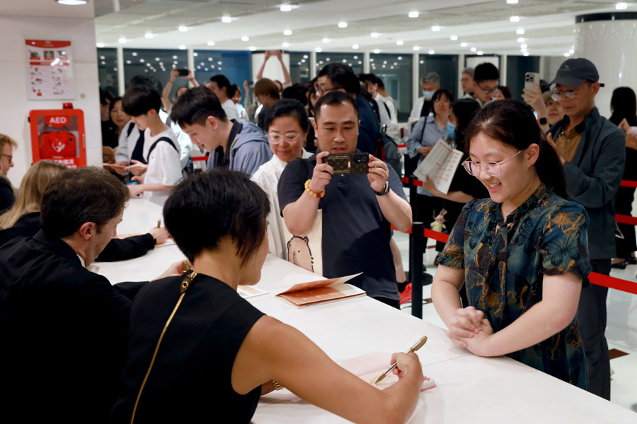 王羽佳与柏林爱乐乐手为乐迷签名 中国上海国际艺术节提供